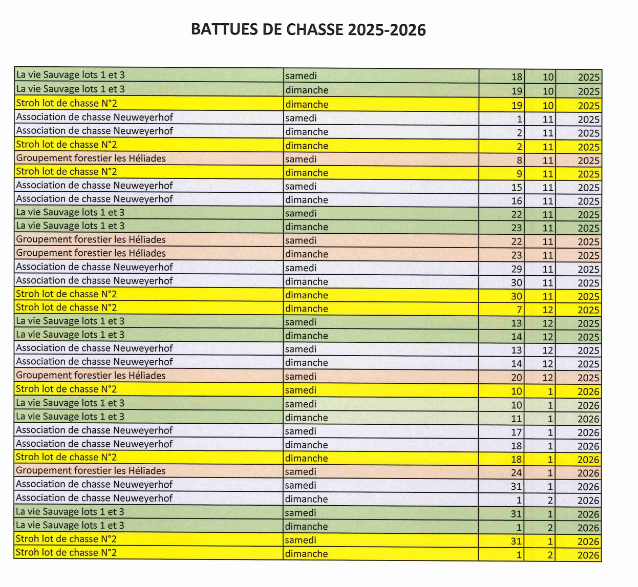 Battues de chasse (MàJ le 26/01/26